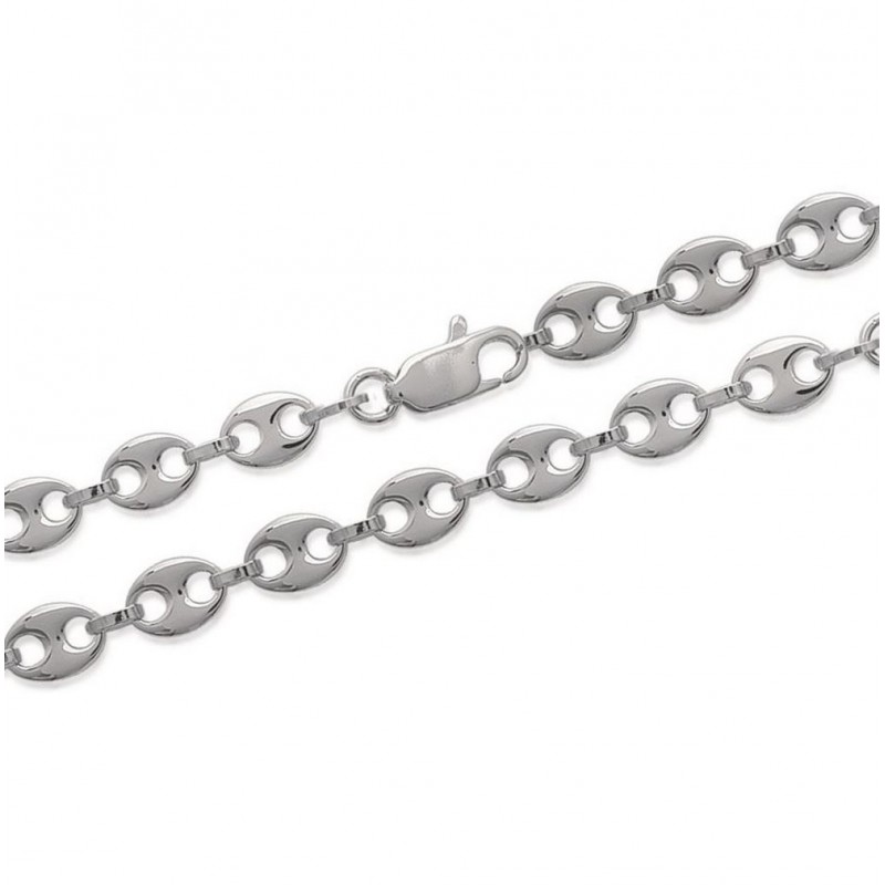 Cette chaîne de cou mixte en Argent 925 rhodié d’excellente qualité maille grains de café est un classique, sobre et discrète, la finesse de la maille légèrement bombée sera appréciée pour son effet brillant.
