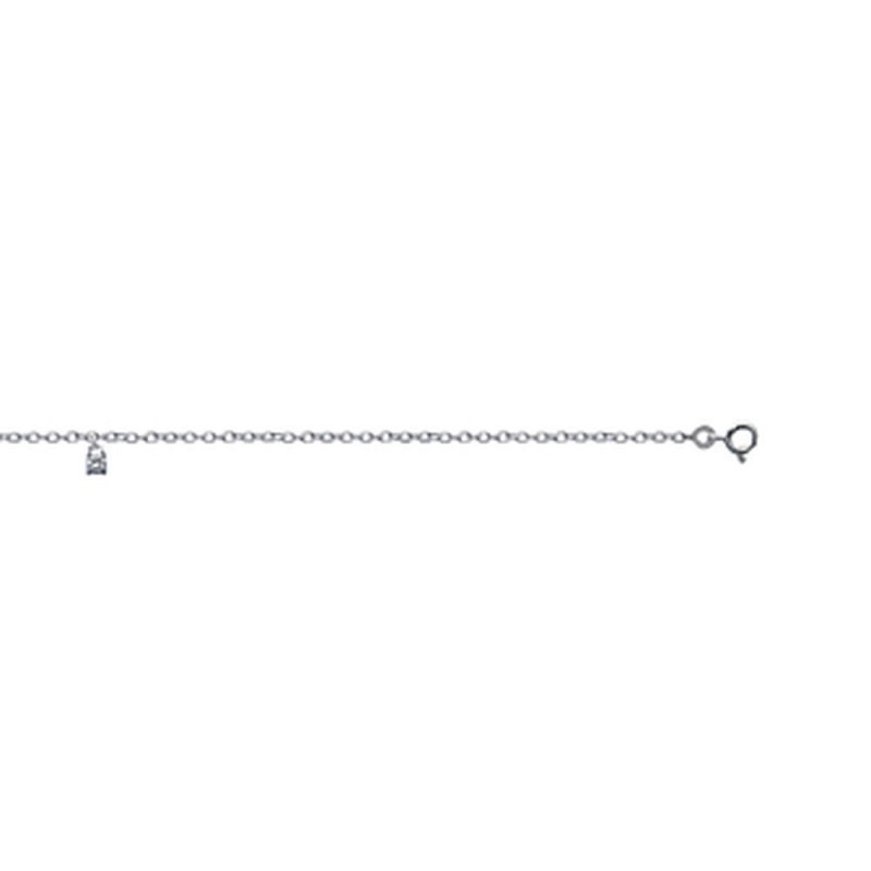 Chaîne de cheville en argent massif 925/1000 breloque pierre ronde en zirconium