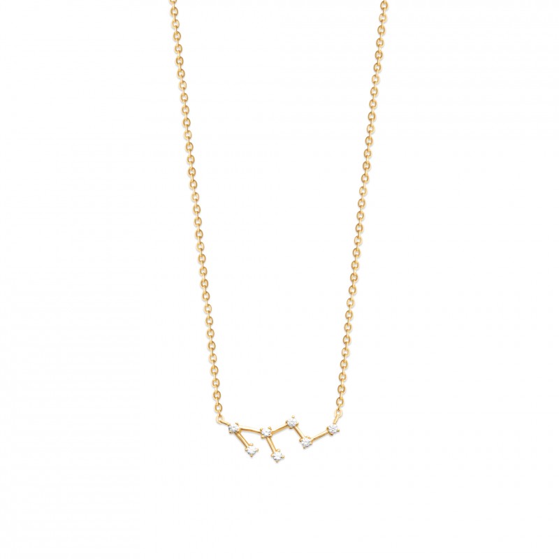 Vous ne resterez pas insensible à ce collier en plaqué or représentant une constellation du signe du zodiaque du " Lion " pavé de pierres en oxydes de zirconium