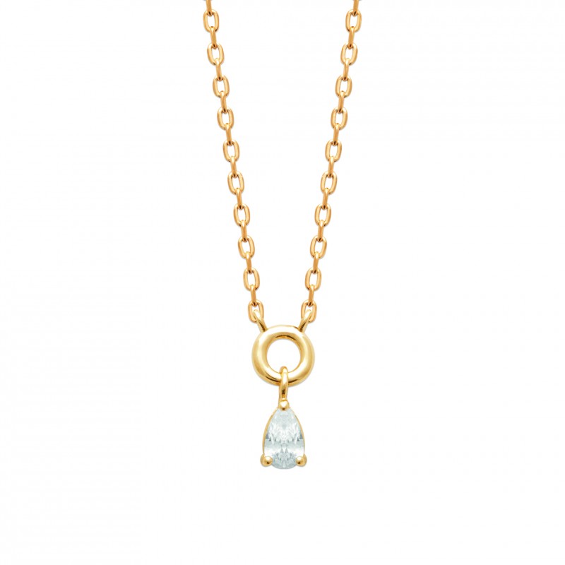 Collier plaqué or pampille pierre goutte poire en zirconium