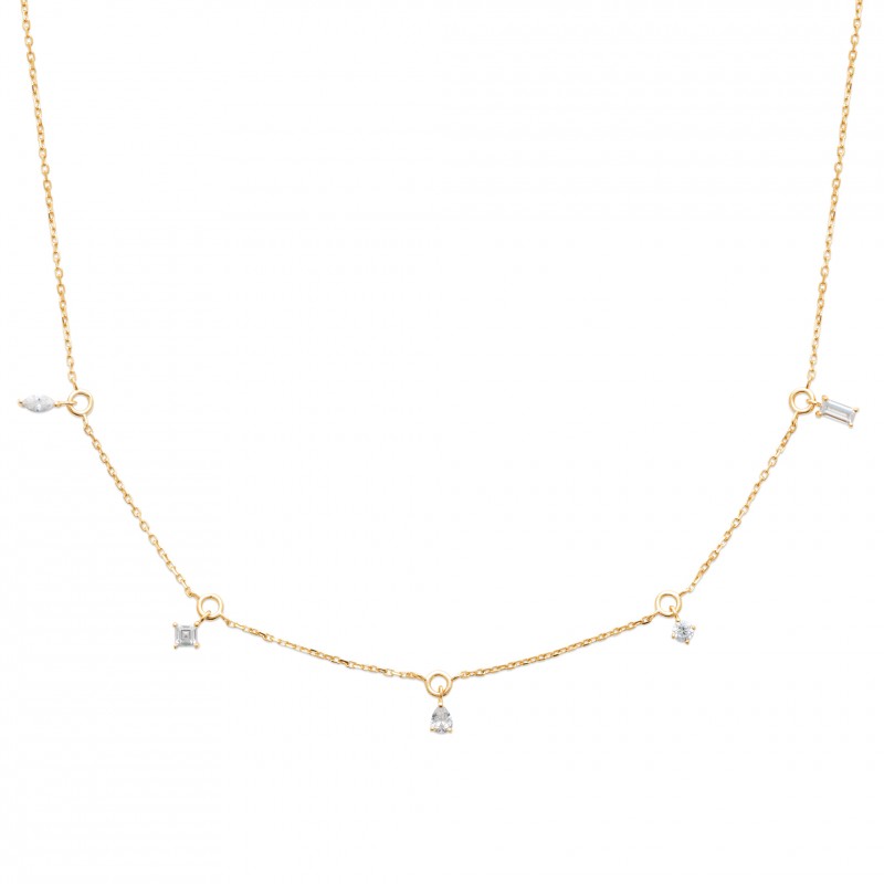 Collier plaqué or pampilles pierres en zirconium blanc