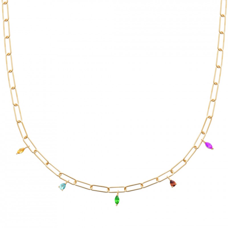 Collier plaqué or pampilles pierres gouttes en cristal multicolore