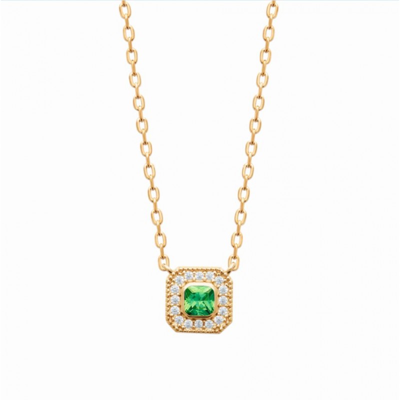 Collier Plaqué Or pierre carré en cristal vert pavé en zirconium