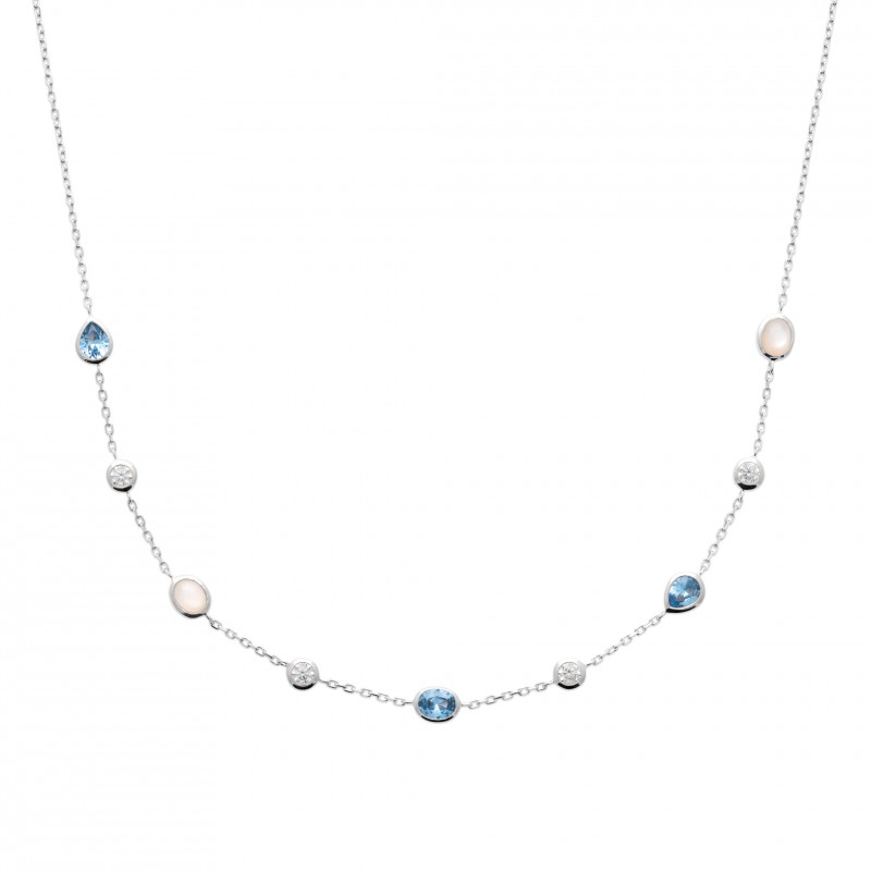 Style chic et intemporel pour ce collier en argent 925/1000 rhodié avec pierre de lune véritable, oxyde de zirconium, pierre ovale en cristal bleu