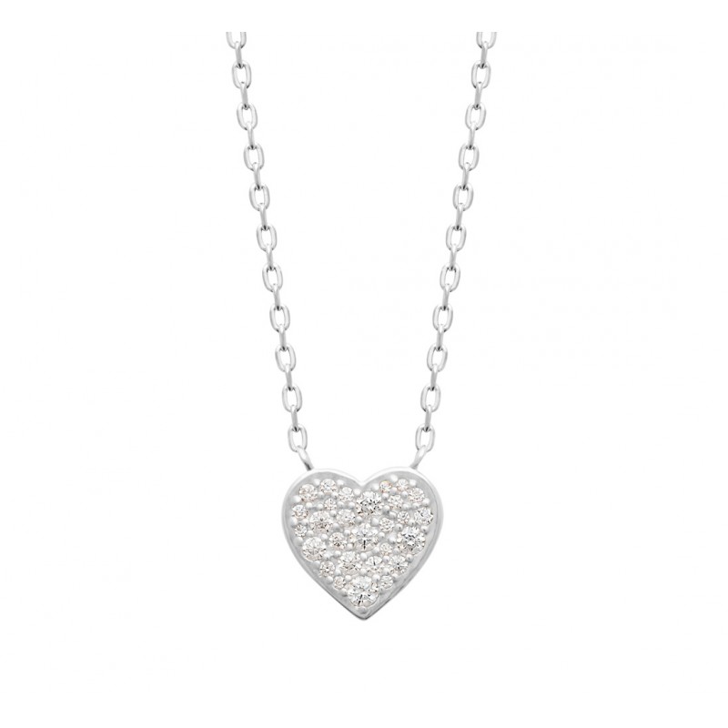Collier pendentif coeur pavé zircons blanc en argent