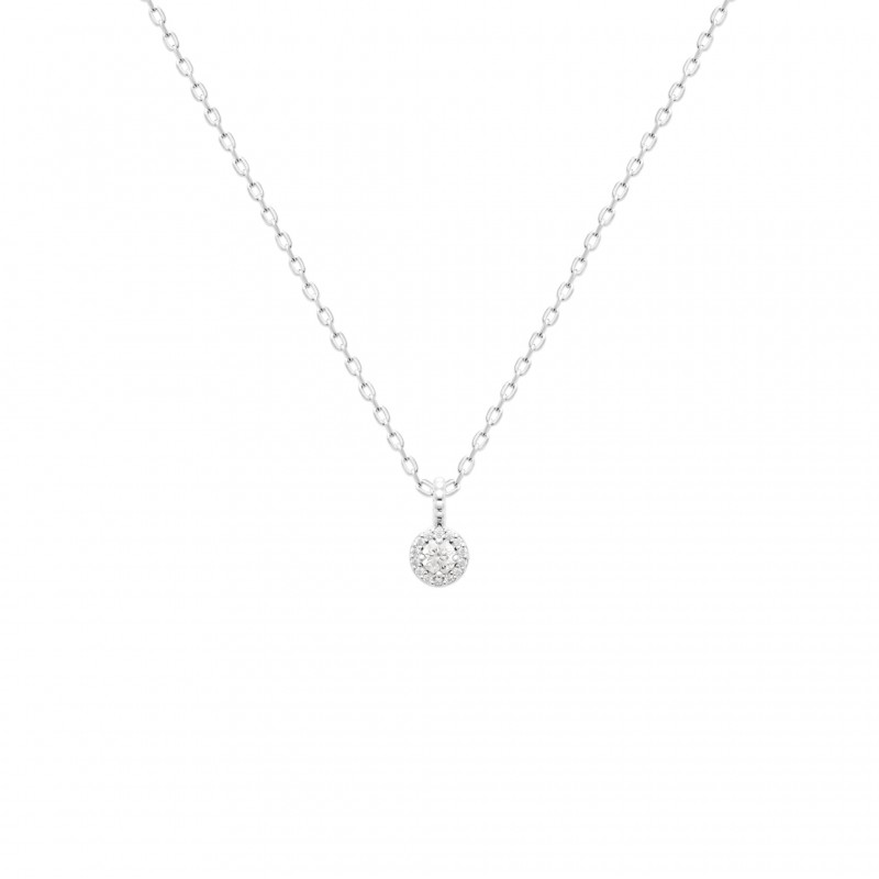 Ce collier est composé d'une fine chaîne et d'un pendentif représentant une sublime pierre ronde en Oxyde de zirconium
