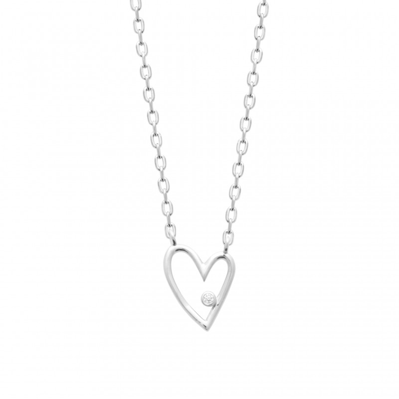 Collier coeur argent avec pierre en oxyde de zirconium blanc