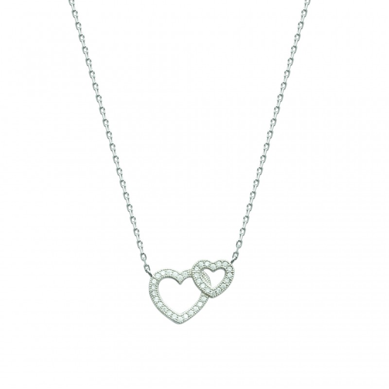 Collier en argent 925/000 rhodié coeurs entrelacés pavé en zirconium blanc