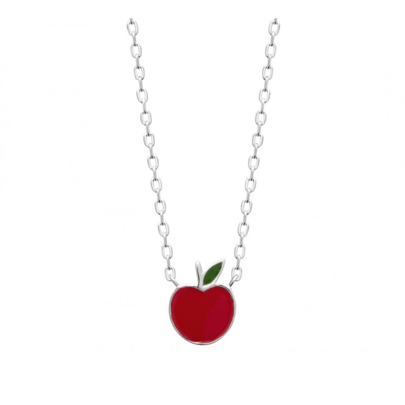 Les colliers pour enfants Obrillant-Bijoux sont en argent rhodié avec pendentif au motif d'une pomme en émail