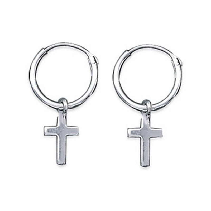 Style intemporel et mixte pour cette paire de créoles en argent 925/1000 croix pendante.