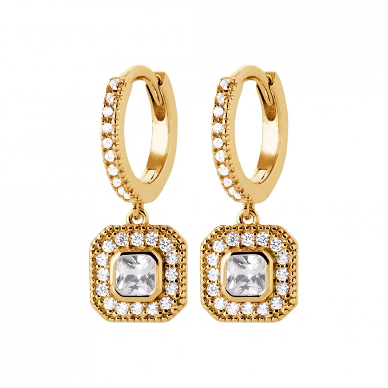 Tellement chic et intemporelle paire de créoles en plaqué or pampilles carrées pavé en oxyde de zirconium blanc