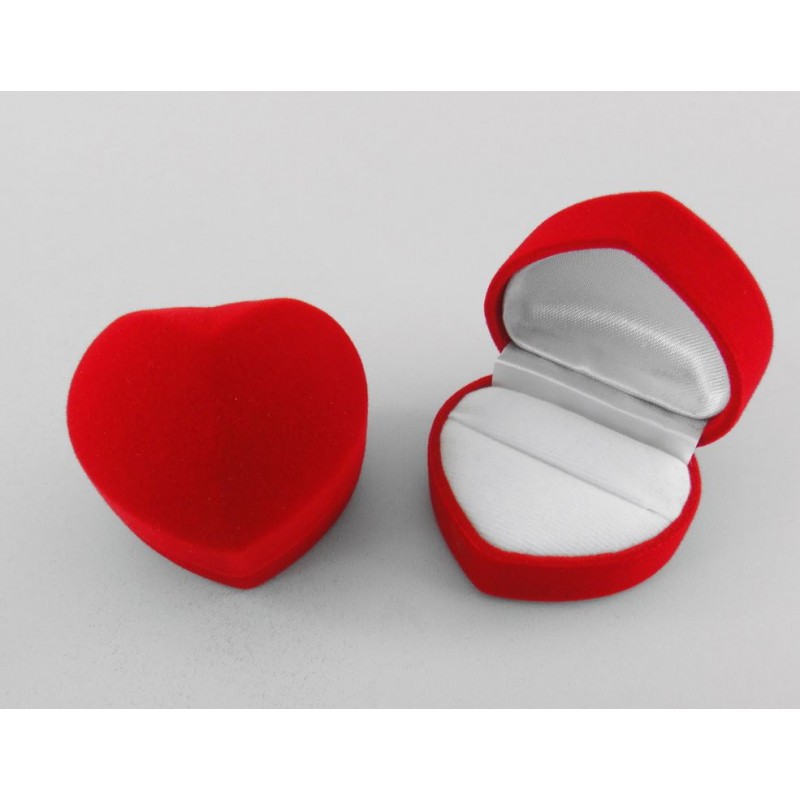 Elégant et délicat petit écrin forme coeur en feutrine rouge avec fond blanx pour accompagner votre paire de puces d'oreilles ou une élégante bague