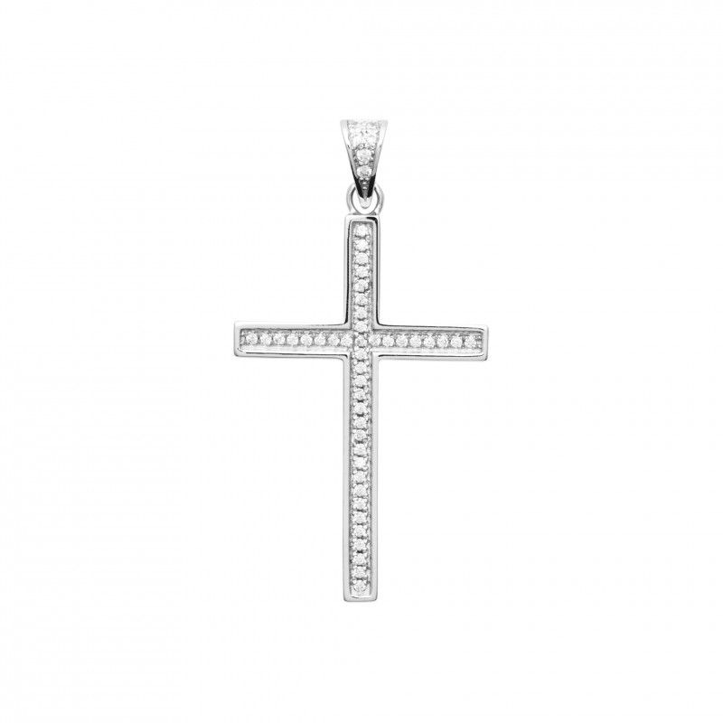 Pendentif grande croix pavé oxydes zirconium blanc et argent