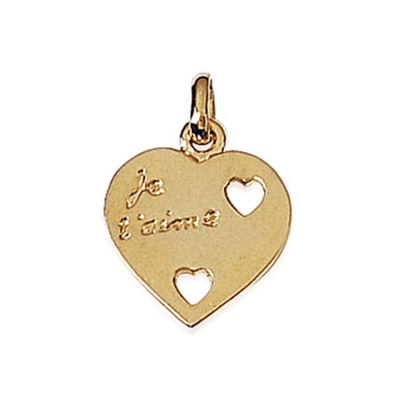 Pendentif en plaqué or cœur finement gravé message " Je t'aime "