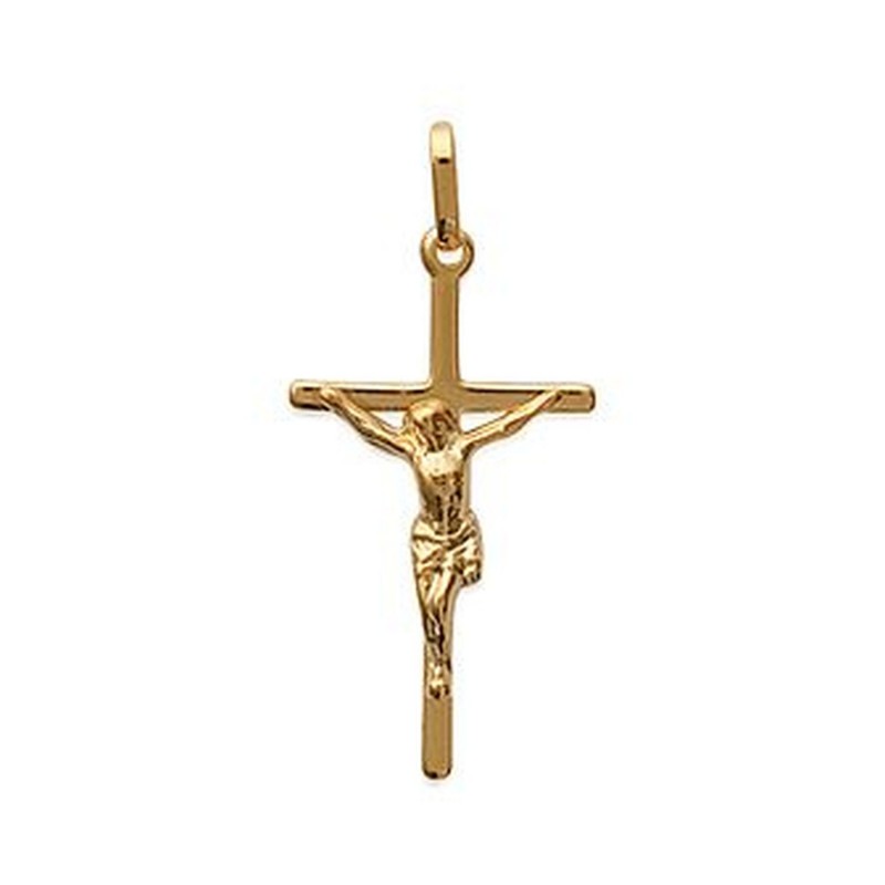 Pendentif plaqué or croix 32 mm christ ciselé religion catholique