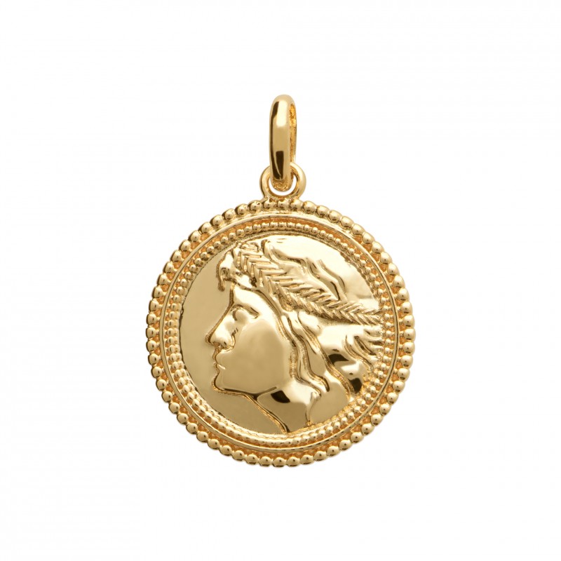 Pendentif en plaqué or médaille ronde tête de Romain