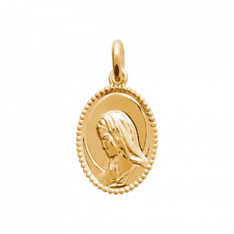 Finesse et délicatesse pour ce pendentif en plaqué or médaille ovale représentant la Vierge Marie