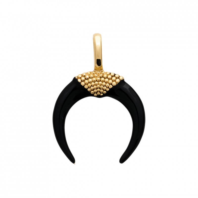 Pendentif en plaqué or corne en émail noir