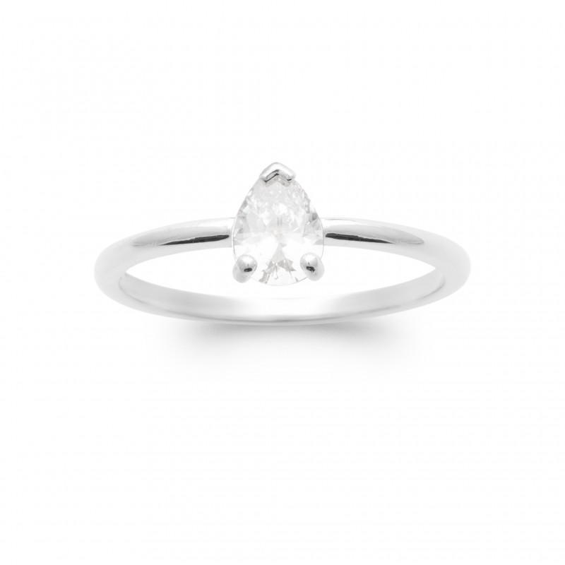 Bague solitaire pierre ovale poire Oxyde de zirconium et Argent - Obrillant-Bijoux