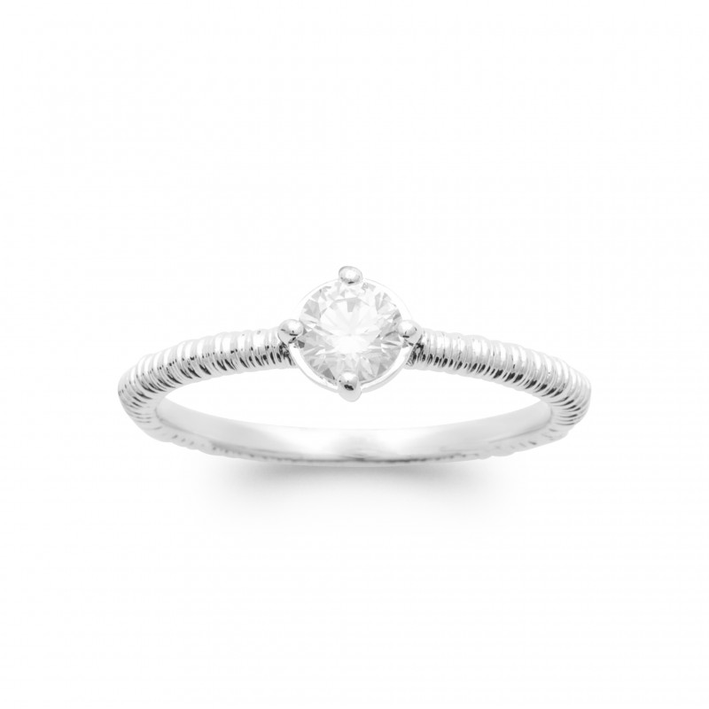 Bague solitaire pierre ronde Oxyde de zirconium et Argent - Obrillant-Bijoux