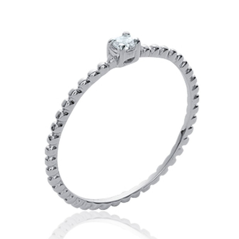 Solitaire monture fine en argent massif 925/1000 rhodié fil boules billes pierre en zirconium blanc