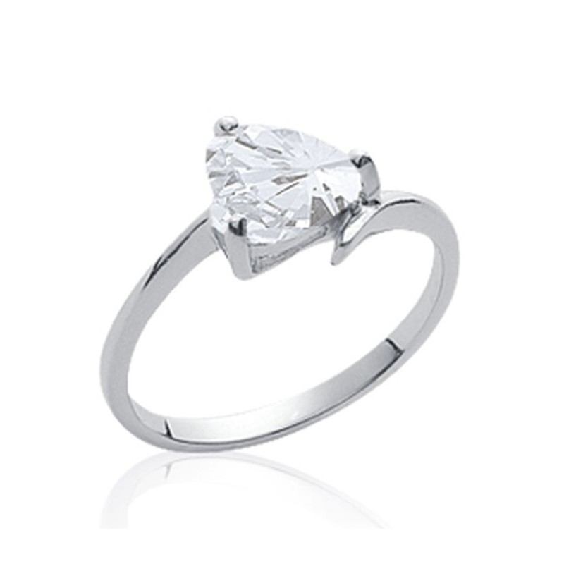 Solitaire en argent massif 925 rhodié pierre en forme de cœur en zirconium blanc