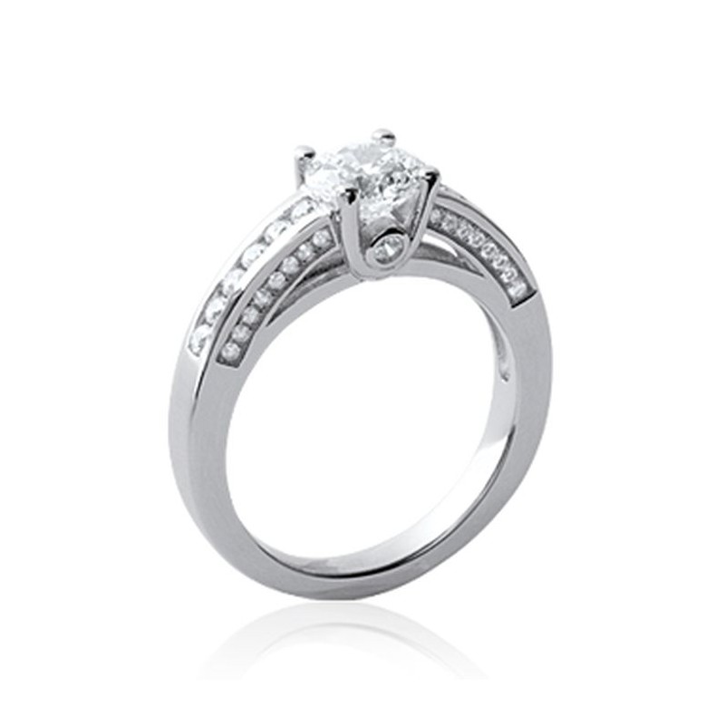 Solitaire accompagné en argent massif 925 rhodié pierres en zirconium blanc microserti chic