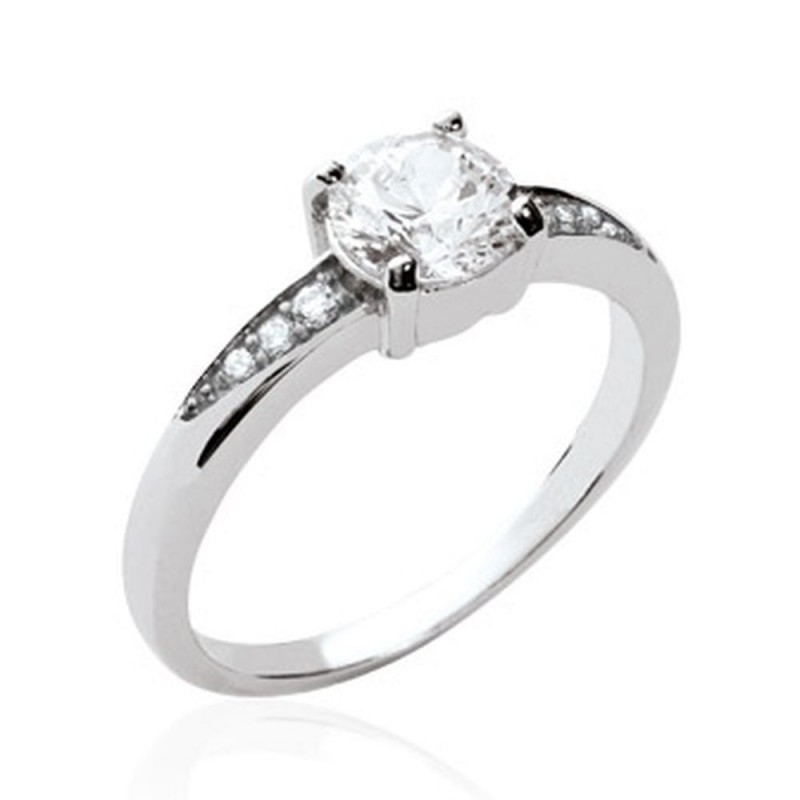 Solitaire accompagné argent 925/000 rhodié pierre ronde en zirconium blanc