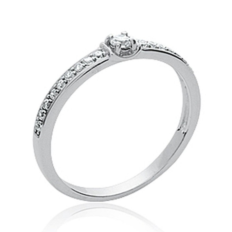 Solitaire accompagné en argent 925 rhodié fines pierres en zirconium blanc