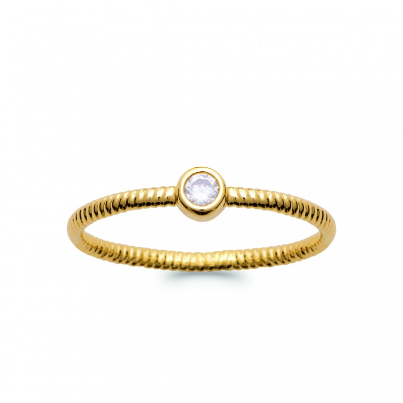 Solitaire en plaqué or monture torsadée pierre ronde sertie clos en oxyde de zirconium blanc