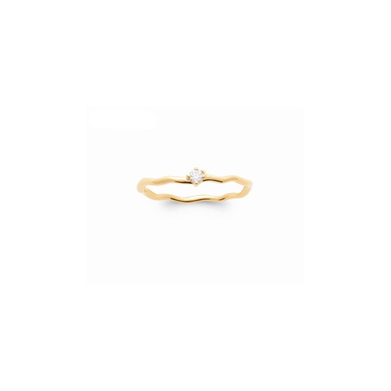 Bague solitaire fine Plaqué or pierre en zirconium blanc