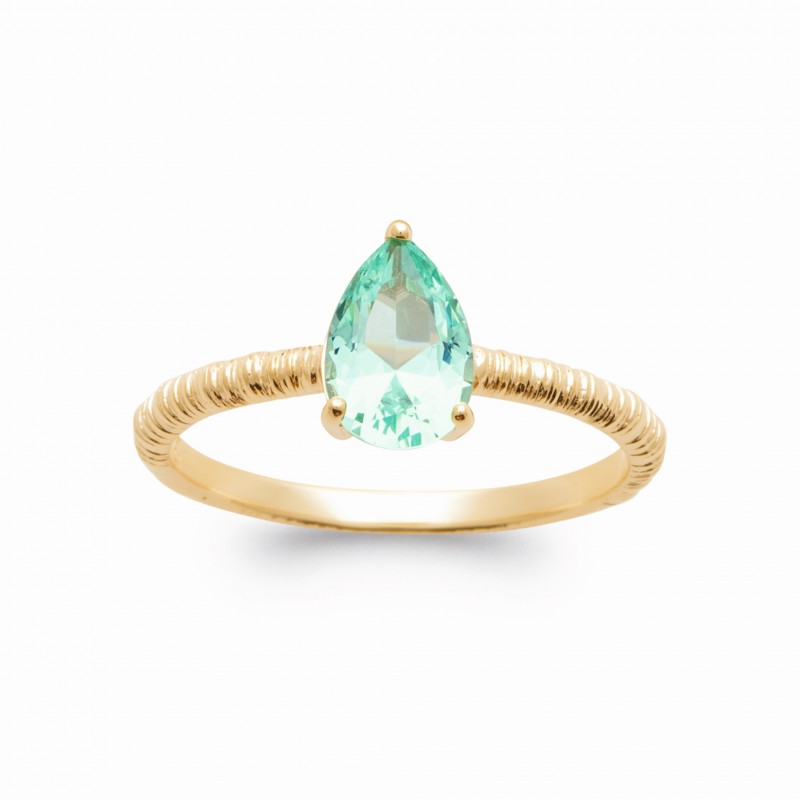 Bague solitaire pierre goutte poire cristal vert clair et Plaqué Or - Obrillant-Bijoux