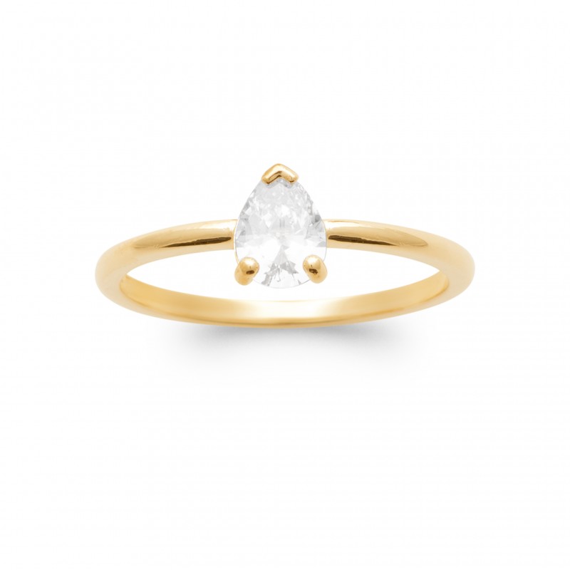 Bague solitaire Plaqué Or pierre poire en Oxyde de Zirconium - Obrillant-Bijoux