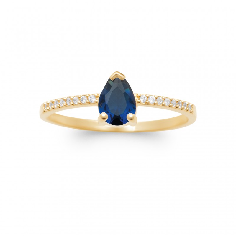 Bague solitaire accompagné Plaqué Or pierre poire en saphir de synthèse - Obrillant-Bijoux