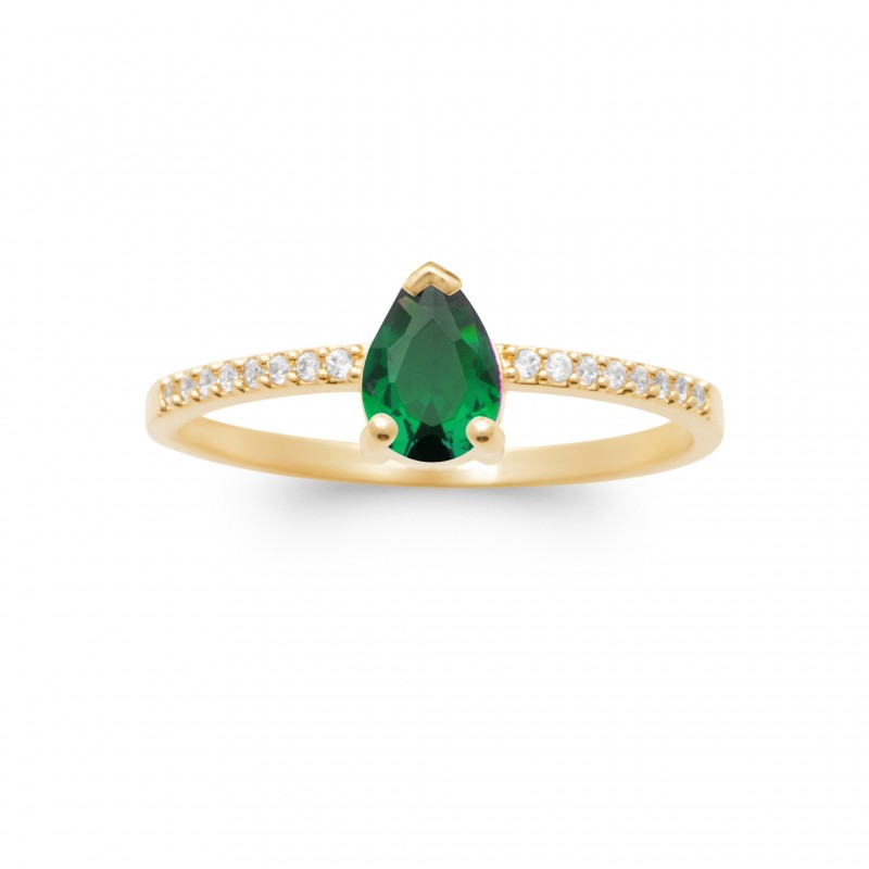 Bague solitaire accompagné Plaqué Or pierre poire en émeraude de synthèse - Obrillant-Bijoux