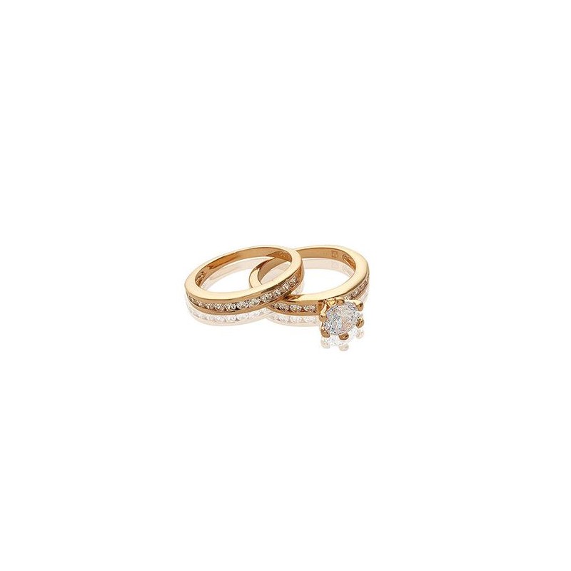 Solitaire accompagnée duo plaqué or pavé en pierres oxyde de zirconium blanc