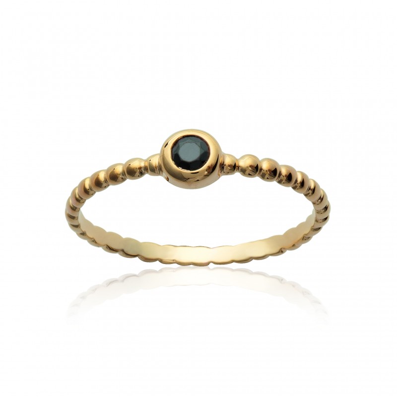 Solitaire fin plaqué or monture perlées avec pierre sertie clos en zirconium noir